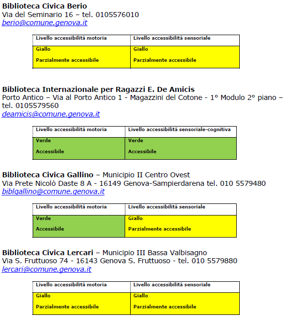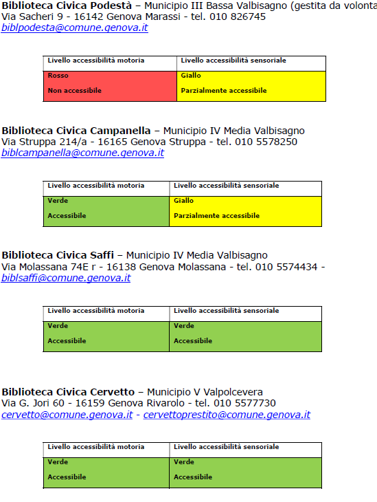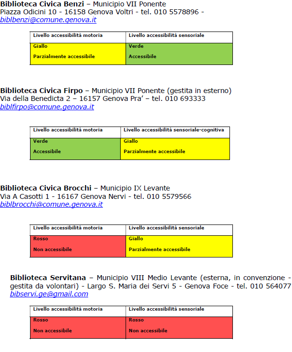 • iscrizione al servizio prestito del Sistema Bibliotecario Urbano del Comune di Genova